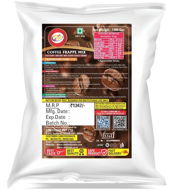 • About Product – Coffee Flavoured Frappe Mix is a powder made from finest ingredients that can be easily reconstituted by the end consumer with cold turning it into a delicious dairy drink in European.