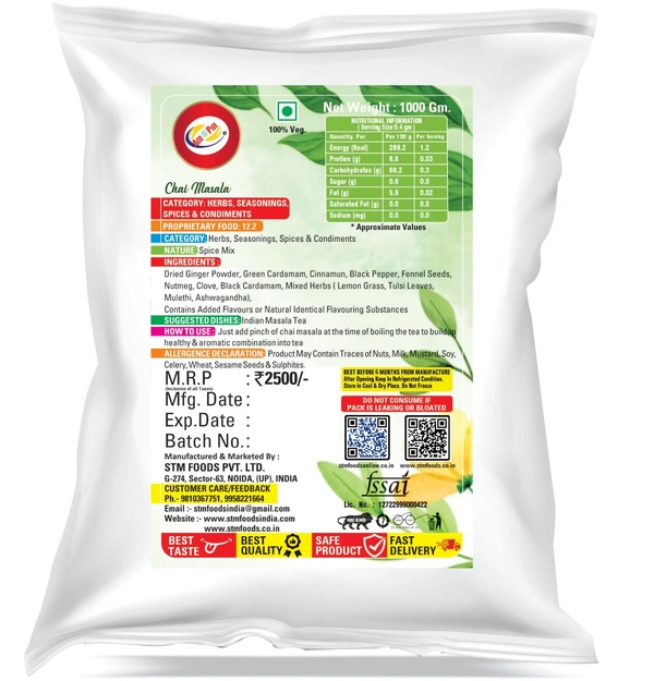 - Applications/Uses with – Approx 0.4 gm Chai Masala per cup of tea