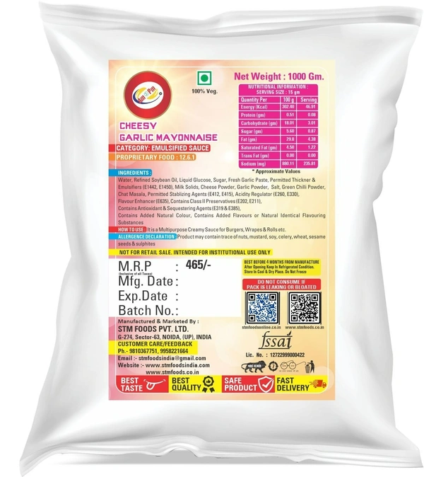 • India’s best Cheesy Garlic Mayonnaise brand for Italian & Mexican fast foods.
