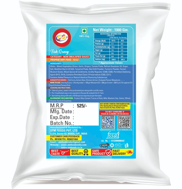- Applications/Uses – One Kg Gravy + One Kg water + 100 gm Mustard Oil + 200 gm Cream + 200 Curd