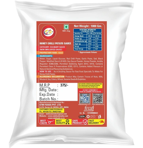 - About Product – Honey Chilli Potato is a perfect example of true snacks or salad dressing sauce. It is a almost fat free water based sauce (taste maker) to make salads or snacks tasty & yummy.