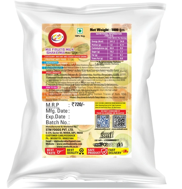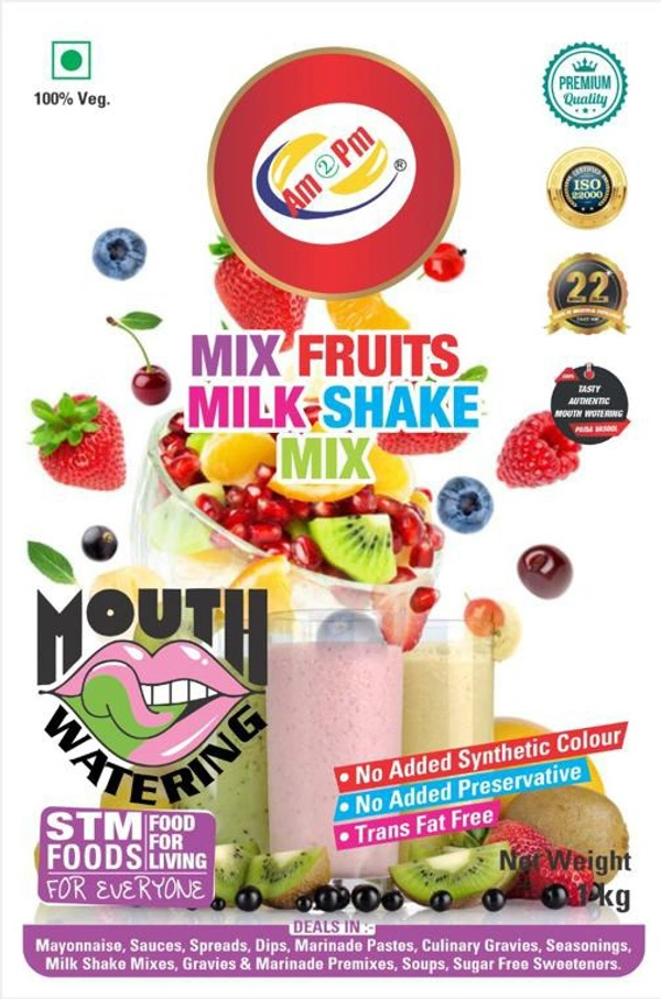 • About Product – Mix Fruits Flavored Milk Shake Mix is a powder made from finest ingredients that can be easily reconstituted by the end consumer with cold or warm milk turning it into a delicious dairy drink.