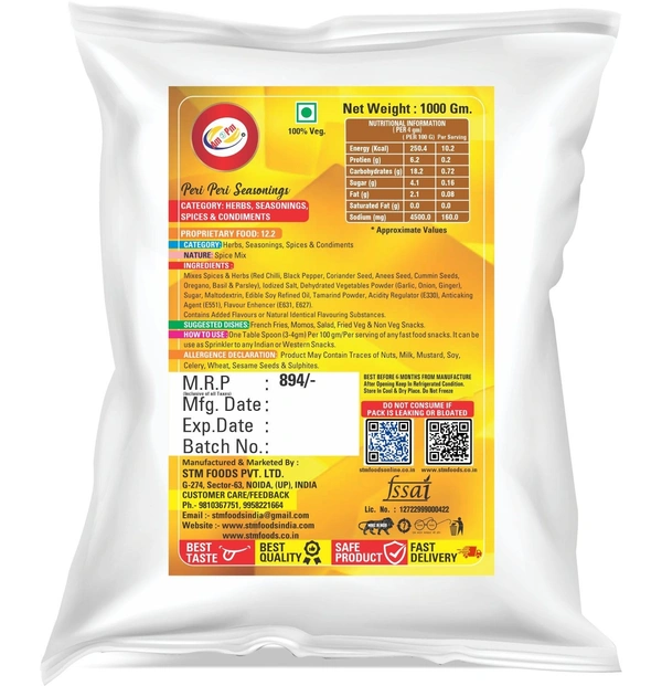 - Applications/Uses with – Approx 2-3 gm Peri Peri Seasoning powder for any foods per serving
