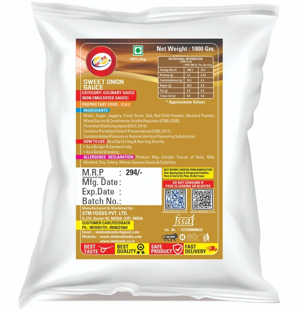 - About Product – Made from thermally processed onion and mustard blended in sugar solution to make a rich & thick consistency. A true Indian ubtly sweet chilli & tangy flavour like no other.