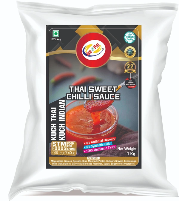 - About Product – Thai Sweet Chilli Sauce is a fat free water based sauce (taste maker) to make salads & snacks tasty & delicious.