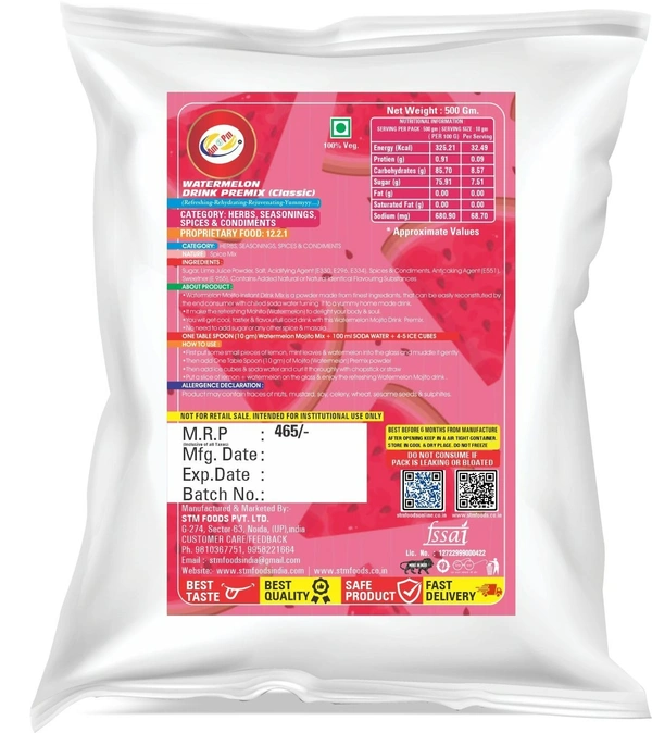 · Similar Products – Lemon Mint Mojito Mix, Blueberry Mojito Mix, Orange Mojito Mix, Pineapple Mojito Mix, Mango Mojito Mix, Watermelon Mojito Mix, Jain Shikanji/Nimbupani Mix, Jaljeera Mix, Panipuri Mix etc..
